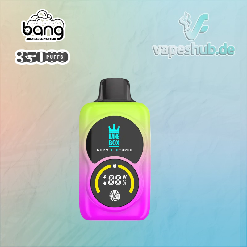 Die BANG BOX 35000 Puffs ist eine neue Generation von Disposable Vapes, entwickelt für maximale Leistung und Vielseitigkeit. Mit einem 950 mAh Cobalt-Akku, 35 ml E-Liquid, einem doppelten Mesh Coil und umschaltbarer Heizleistung bietet dieses Modell ein Dampferlebnis auf höchstem Niveau.
