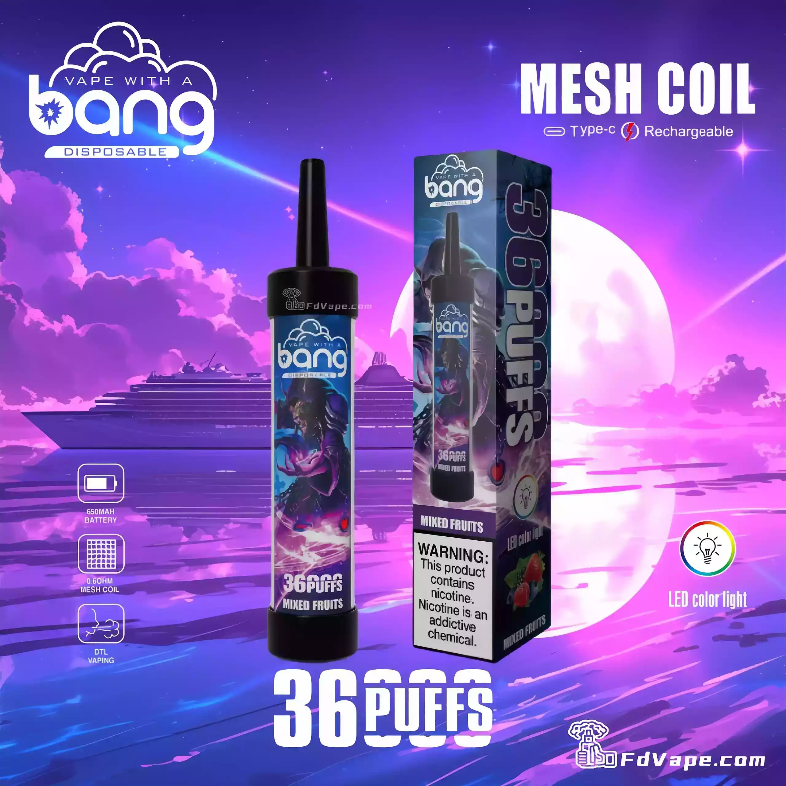 ⚙️ Technische Daten – Bang DTL Shisha 36000 Puffs