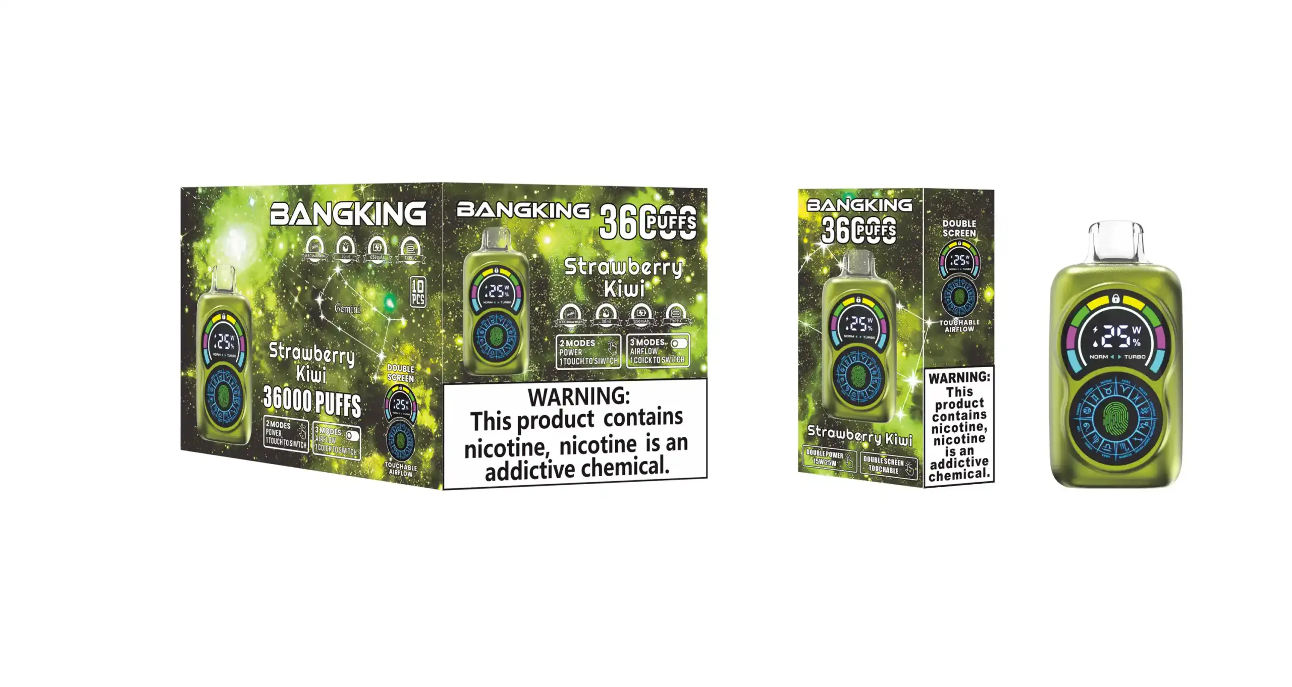 Die BANG KING 36000 puffs kombiniert fortschrittliche Technik mit elegantem Design. Dieses Disposable Vape-Modell bietet bis zu 36.000 Züge, eine große 30 ml Liquid-Kapazität, sowie ein modernes Touchscreen-System zur Feineinstellung.